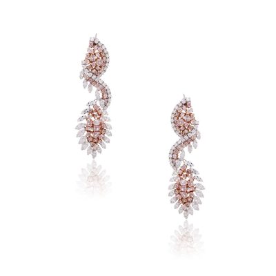 18k Two Tone Gold 16.43ctw Multi Shape Pink Diamond Drop Earrings