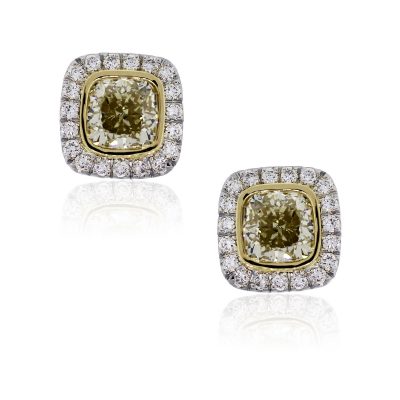 | Diamond Details | Approximately 6.04ctw of cushion cut fancy yellow diamonds. Diamonds are SI in clarity